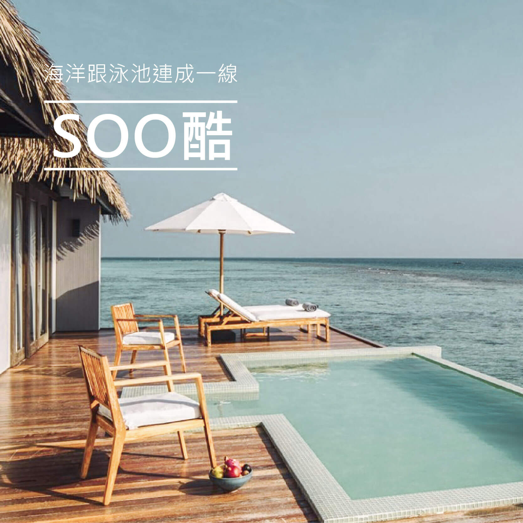 房間外放眼看去可看到印度洋,選擇泳池水上別墅,可在無邊際泳池從晨泳到夜泳,或從日光浴甲板一躍即可跳入海中,24小時盡情與水同行。