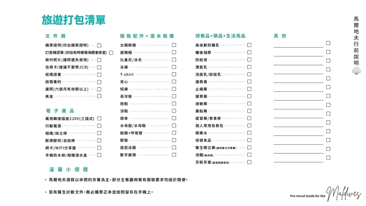 無論您是首次造訪馬爾地夫,還是再次前往,我們都知道出國前的準備工作非常重要。從檢查護照到確認機票以及準備好各項文件流程和行李清單,每一步都需要細心的注意。