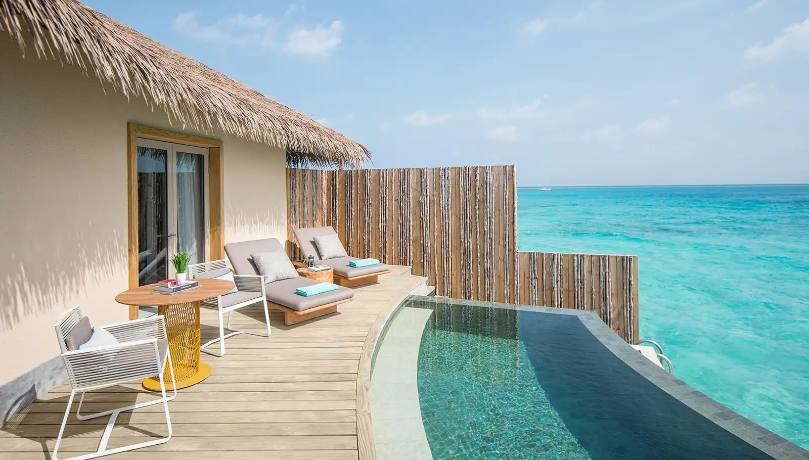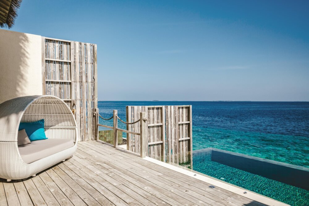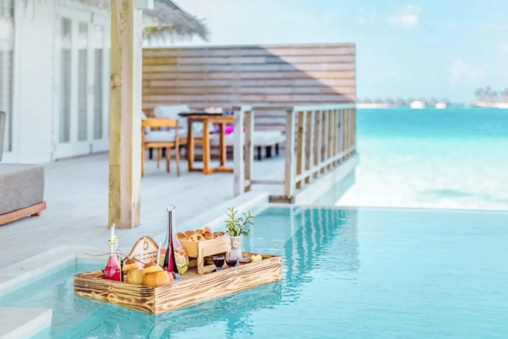 度假村設施新穎完善,客房寬敞舒適且設計時尚。每間水上屋都配有私人泳池,完美的視覺美學與奢華享受,讓度假村成為喜愛拍照的旅客和蜜月情侶的首選度假勝地。