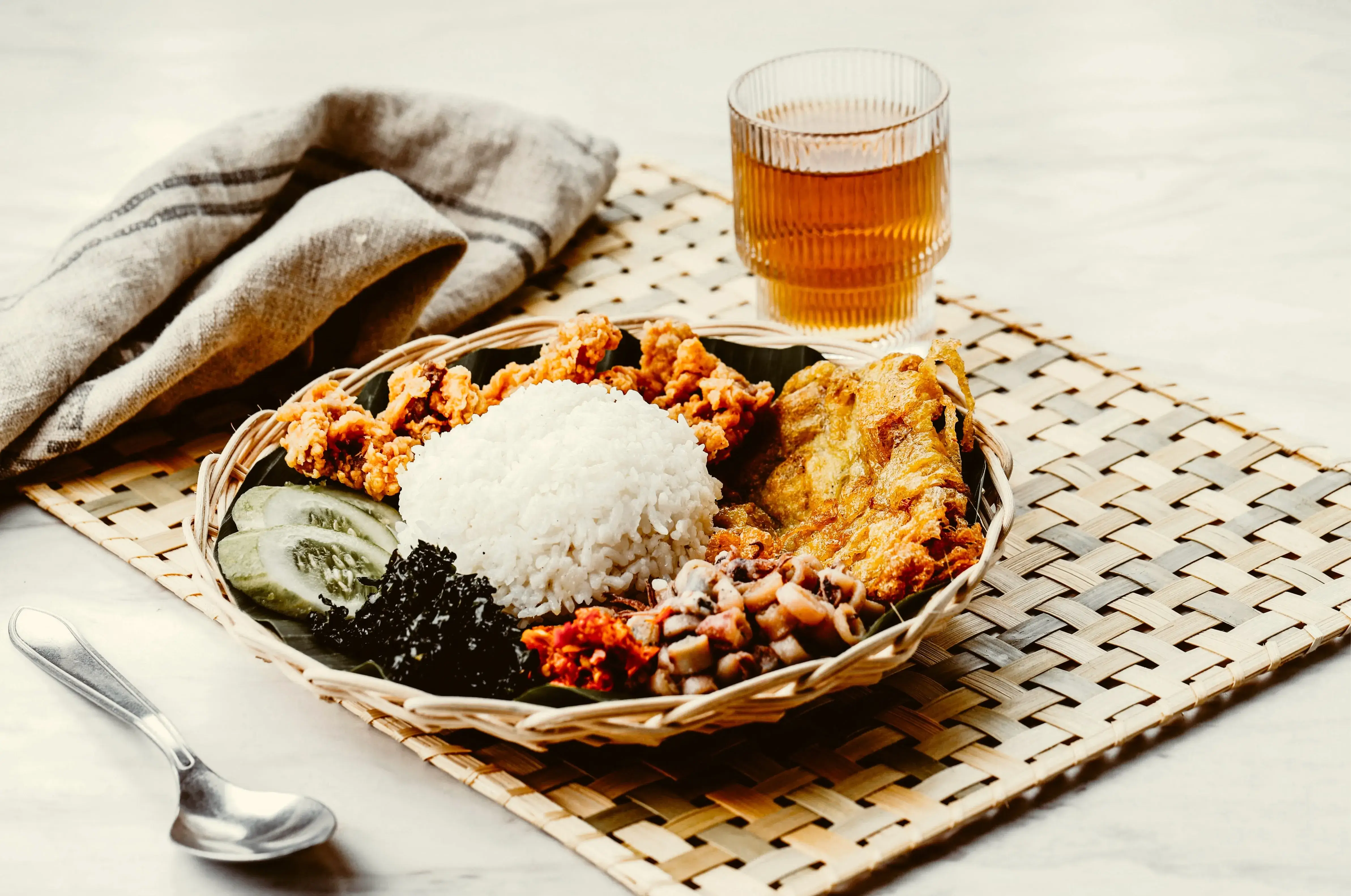 印尼綜合飯以米飯為主食,是在地人的日常美食之一,從小吃攤到餐廳都有它的身影,印尼話中 Nasi 是「飯」、 Campur 是「混合」之意,會搭配蛋、肉、蔬菜、花生和炸蝦餅等等,配色鮮豔令人食指大動。