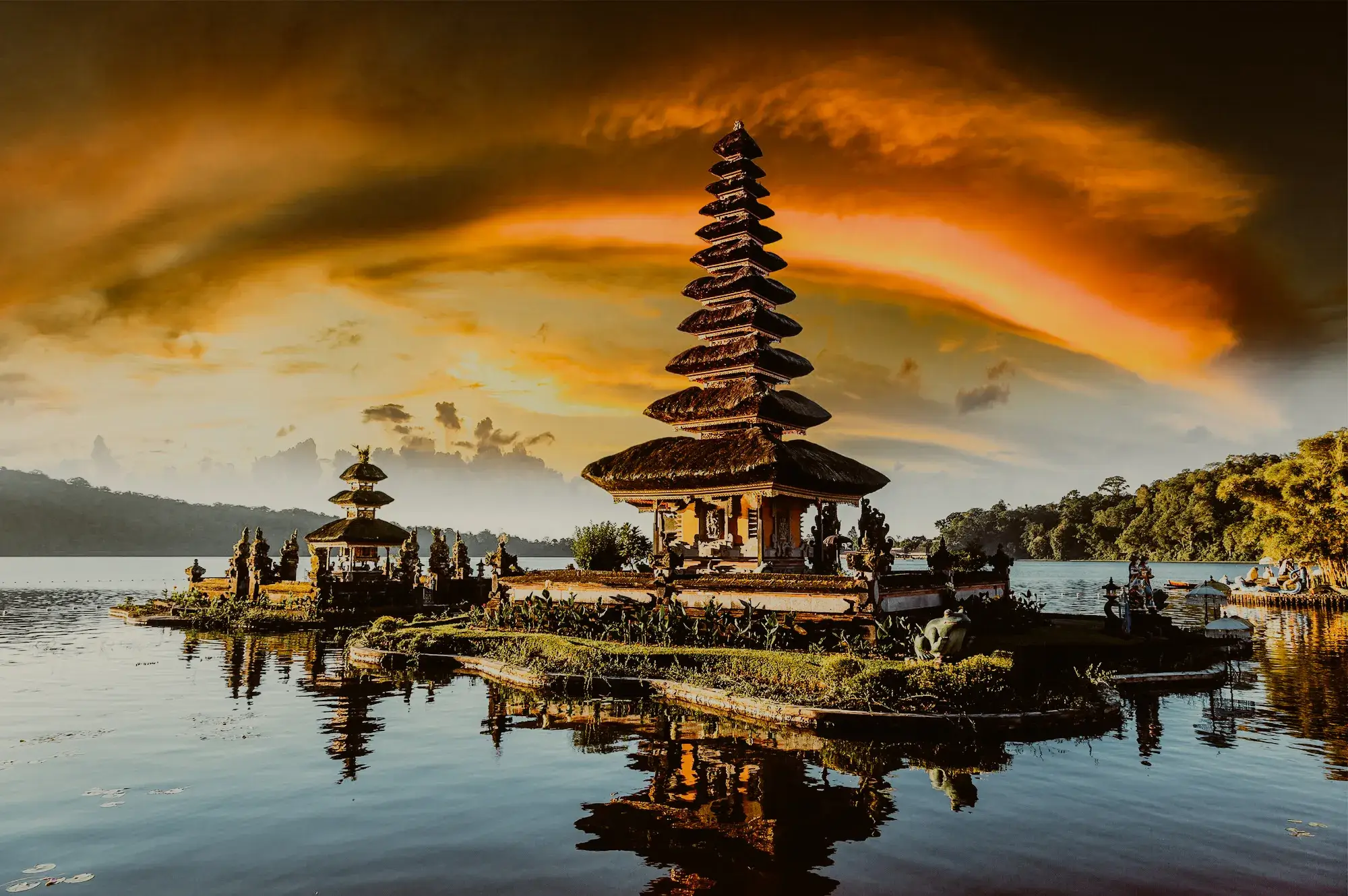位於峇里島中部的布拉坦湖畔,於 17 世紀建造,寺廟周圍被群山與湖水環繞,主要供奉湖神Dewi Danu,為掌管水之女神、以及印度教濕婆的祭拜之地,布拉坦水神廟建築群由 4 個神殿構成,這裡不僅是重要的宗教場所外,更是農業祈禱中心,當地農民會在此祈求豐收。寺廟尤其在清晨時分,被薄霧包覆時,宛如整個漂浮在湖面上,素有水上寺廟之稱,如夢似幻,十分迷人。