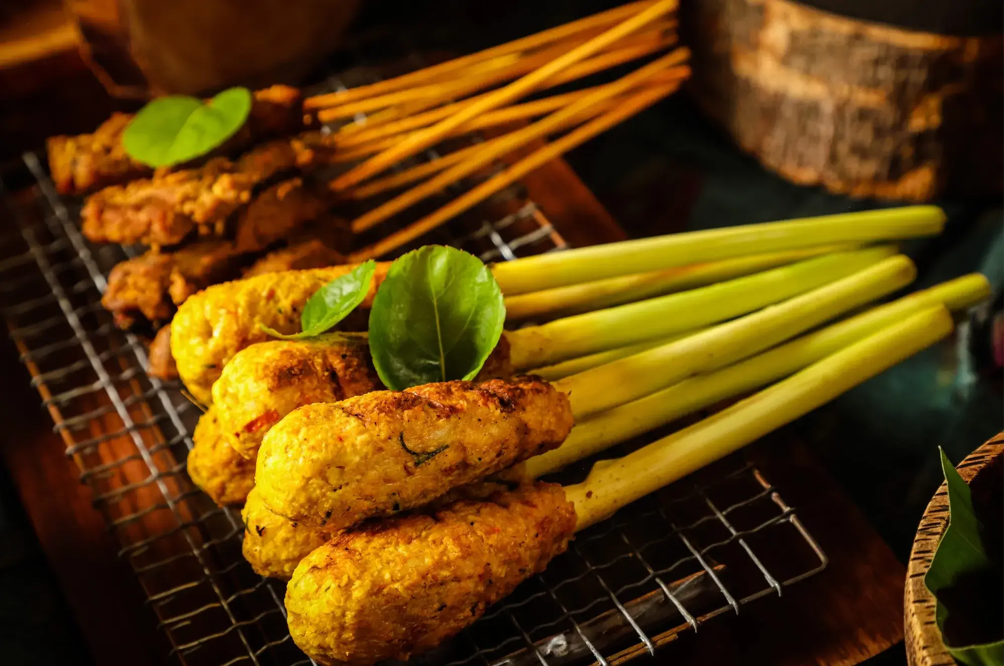 沙嗲在峇里島隨處可見,是在地人喜愛的平民美食。多半使用羊肉、牛肉、或雞肉,上面塗滿了濃郁的東南亞風味醬汁,再透過爐火炭烤,從遠處就能聞到迷人的香氣,濃濃的南洋風味,每口令人眷戀無比,吃沙嗲可配上椰葉、小黃瓜或生洋蔥等,讓風味更加昇華。