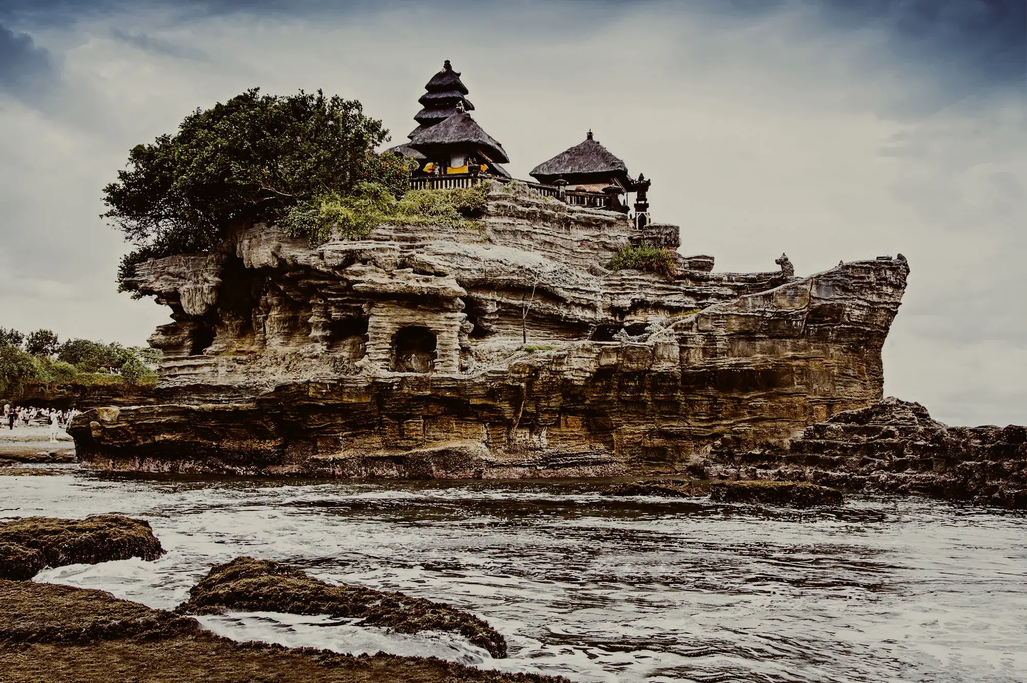 位於峇里島塔巴南區,座落於海岸旁的海神廟,建立於 16 世紀,是峇里島最具代表性的廟宇,它蓋在一座離岸大岩石上,隨著潮汐更迭體現出不同樣貌,當漲潮時會被海水包圍,中間的通道都無法通行,必須等待退潮才能進入海神廟,旅人可以在寺廟前欣賞到雕刻精美的寺廟建築外,這裡也是被譽為絕美夕陽之處,當日落時分整座寺廟會呈現金黃色,宛如金色聖殿令人如癡如醉。