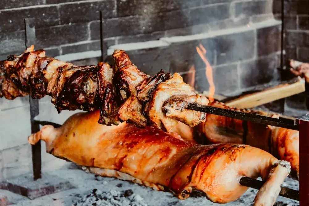 烤豬飯(Babi Guling),為峇里島平民美食,將豬身內塞滿獨特芬芳的香料,並整隻架在烤臺上藉由人工翻轉方式,慢慢烘烤至金黃,通常盤子上會先放一張棕色的紙,再放上一片芭蕉葉,並將飯鋪蓋於中央再放上烤好的豬肉,外酥內軟的口感,湯汁與豬肉配上米飯和蔬菜,再配上辣醬,每一口皆讓人讚歎。