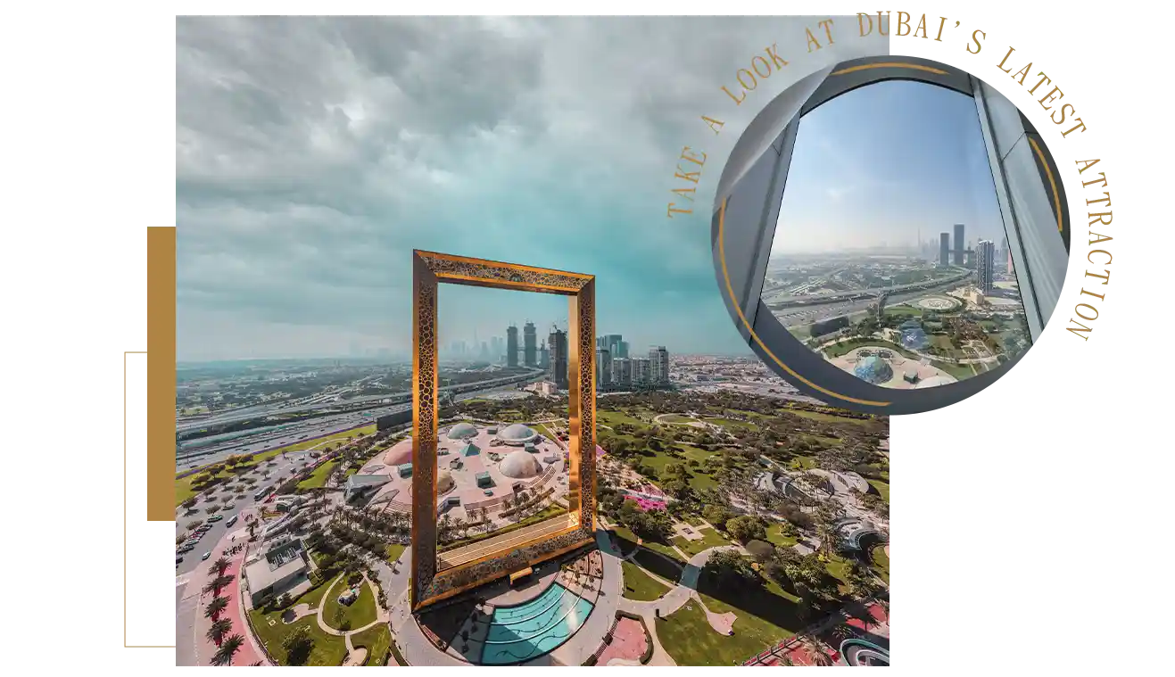 50層樓高的杜拜相框杜拜相框剛好佇立在古老的舊城區和現代化的市中心之間。