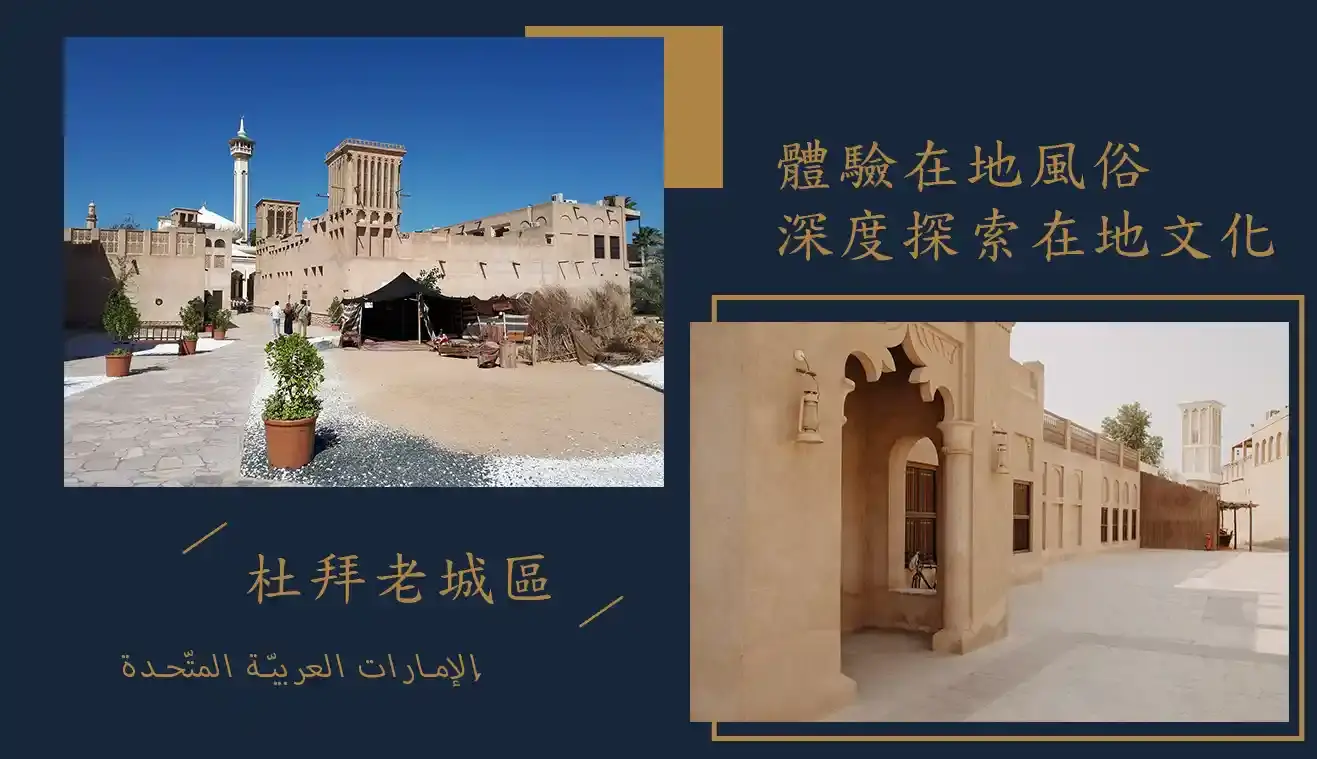 在阿法赫蒂歷史街區探索19世紀杜拜的生活區,是一個重要的產地,部分原始基礎設施都保存完好。傳統的風塔由砂岩柚木、棕櫚木和檀香木建造,塔樓都講述了七個酋長國之前的生活故事。沿著蜿蜒的街道探索杜拜文化、大多數的傳統屋舍已經改成咖啡館、博物館、藝廊、民宿等,走在巷弄間彷彿穿越時空一般。