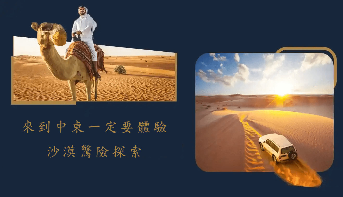 ■衝沙行程→女生可免費手繪→與駱駝拍照→表演活動(齋月期間無肚皮舞表演)
