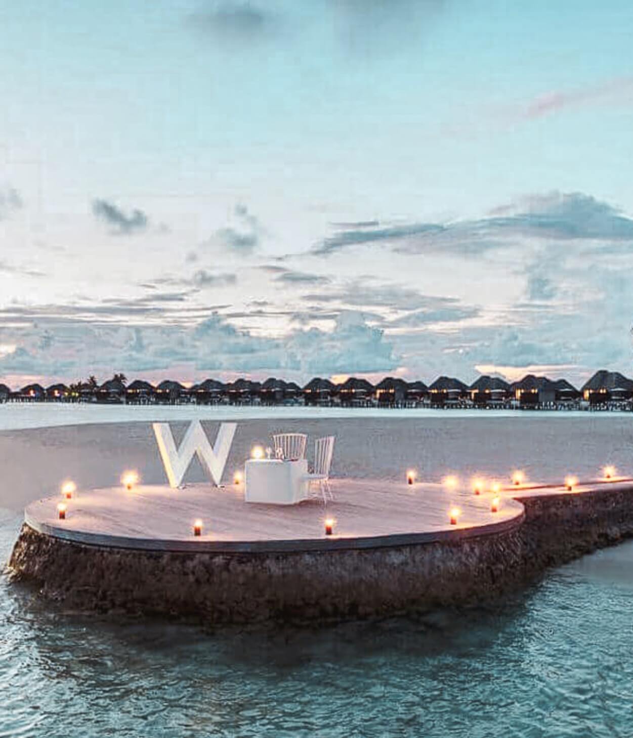 豪華5星級私人島嶼度假村,所有水屋都帶私人按摩泳池,都帶玻璃地板,部分房間帶網床,W酒店有四間異國餐廳和兩間酒吧,房間 MINI 吧免費供應可樂、雪碧、蘇打水和果汁,從沙灘到池畔都能享受如島之名的寧靜。