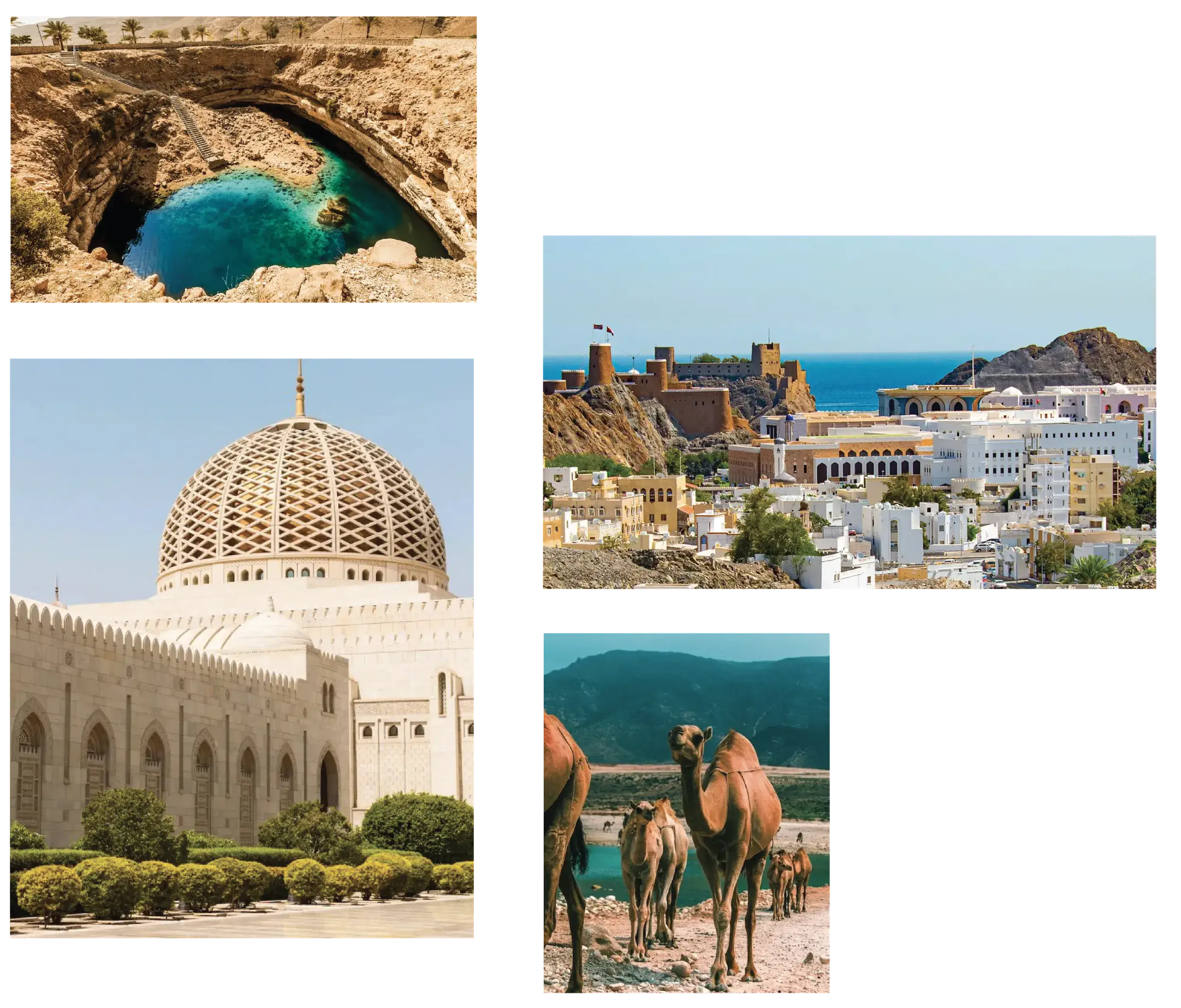 當地導遊專業帶路,輕鬆暢遊千年古國—阿曼王國,走訪蘇丹卡布斯大清真寺、馬斯喀特皇家歌劇院、尼日瓦城堡,或探索美麗的隕星深井洞或瓦迪沙卜峽谷等必訪旅遊景點,體驗沃西拜沙漠之旅,感受傳統阿曼的熱情款待。