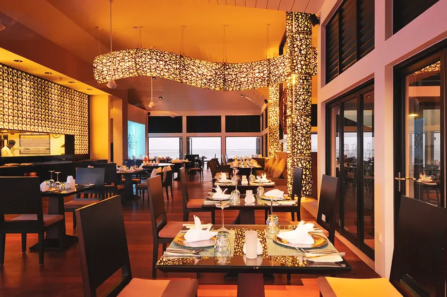 餐廳介紹:島上的水上餐廳,結合韓國、泰國、越南和日本的烹飪料理,搭配令人驚嘆的日落美景,為您帶來難忘的用餐體驗。