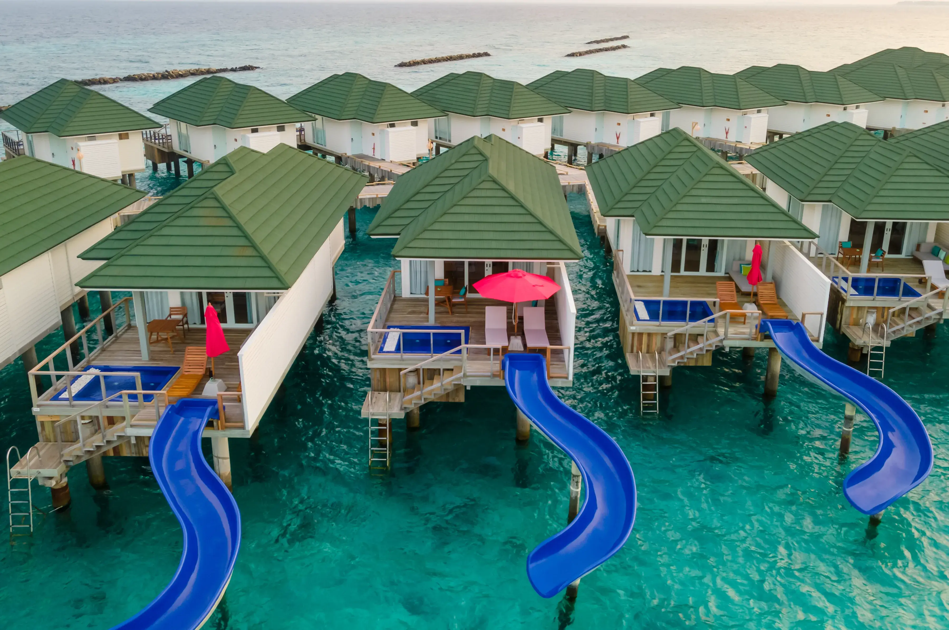 一島一飯店的奢華度假,夢幻水上屋、碧藍海水與豐富海洋生態聞名。盡情享受海景SPA體驗、潛水、水上活動以及出海活動。