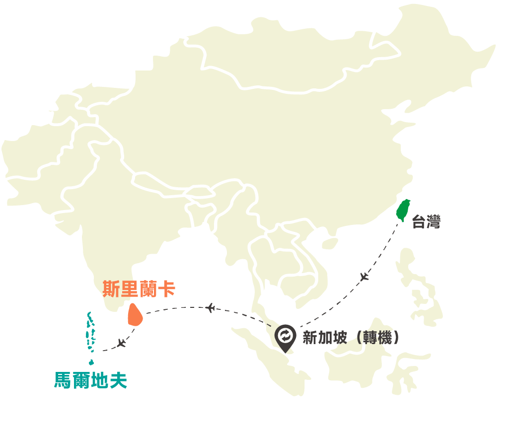 本行程主要搭乘服務品質優異的新加坡航空 Singapore Airelines,並搭配斯里蘭卡國家航空 SriLankan Airlines 銜接航段,讓旅程舒適順暢,安心展開印度洋雙國探索之旅。